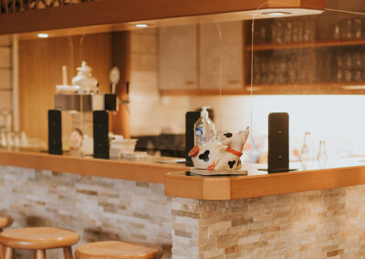 Eine kleine Auswahl an Getränken steht immer bereit – von frisch gezapftem Weizenbier über Softdrinks bis zu einem Glas Wein oder Prosecco.